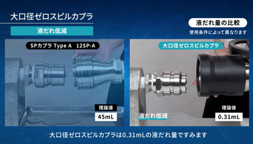 迅速流体継手「大口径ゼロスピルカプラ」 分離時の液だれ量と接続時の空気混入量を抑えつつ大流量を実現 しました。また、大口径でありながら接続しやすい構造を採用 しております。